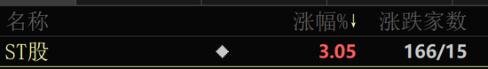 市场热点方面,ST股今日掀涨停潮,板块指数高开高走单边上扬涨逾2%,创近一年半来新高。板块内近90%个股上涨,其中ST香雪(维权)、*ST苏吴(维权)、ST华西(维权)、*ST兰黄等逾50只个股涨停或涨超5%。