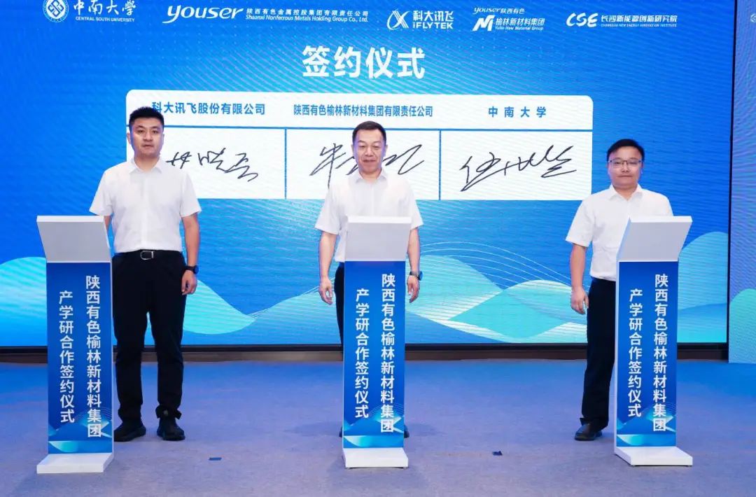 8月22日,陕西有色榆林新材料集团有限责任公司(以下简称“榆林新材料集团”)与中南大学、科大讯飞在陕西榆林举行产学研合作交流暨合作签约仪式。中南大学党委常委、副校长郭学益,陕西有色金属集团党委委员、副总经理黄忠良,科大讯飞副总裁孙亮出席会议并致辞。榆林新材料集团党委书记、董事长杨国平,党委副书记、总经理牛虎明出席。