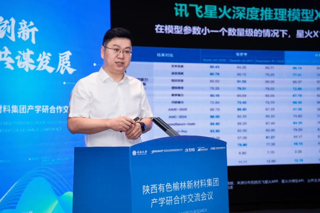 中南大学、长沙新能源创新研究院、科大讯飞、榆林新材料集团有关负责人在当天的合作交流会上围绕科技创新、产业孵化、AI场景应用等作了主旨报告。三方联合研发团队根据业务分工在榆林新材料集团本部分组开展了座谈交流,详细了解了校企战略布局、科技创新、产业发展现状以及技术攻关重点。